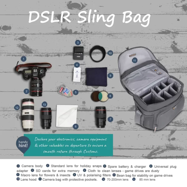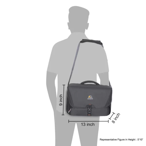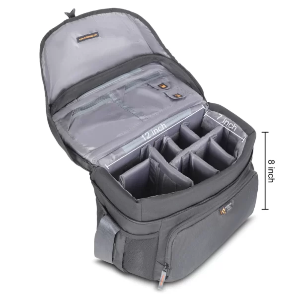 Camera shoulder bag that carries up to 2 DSLR cameras plus additional lenses and flash.